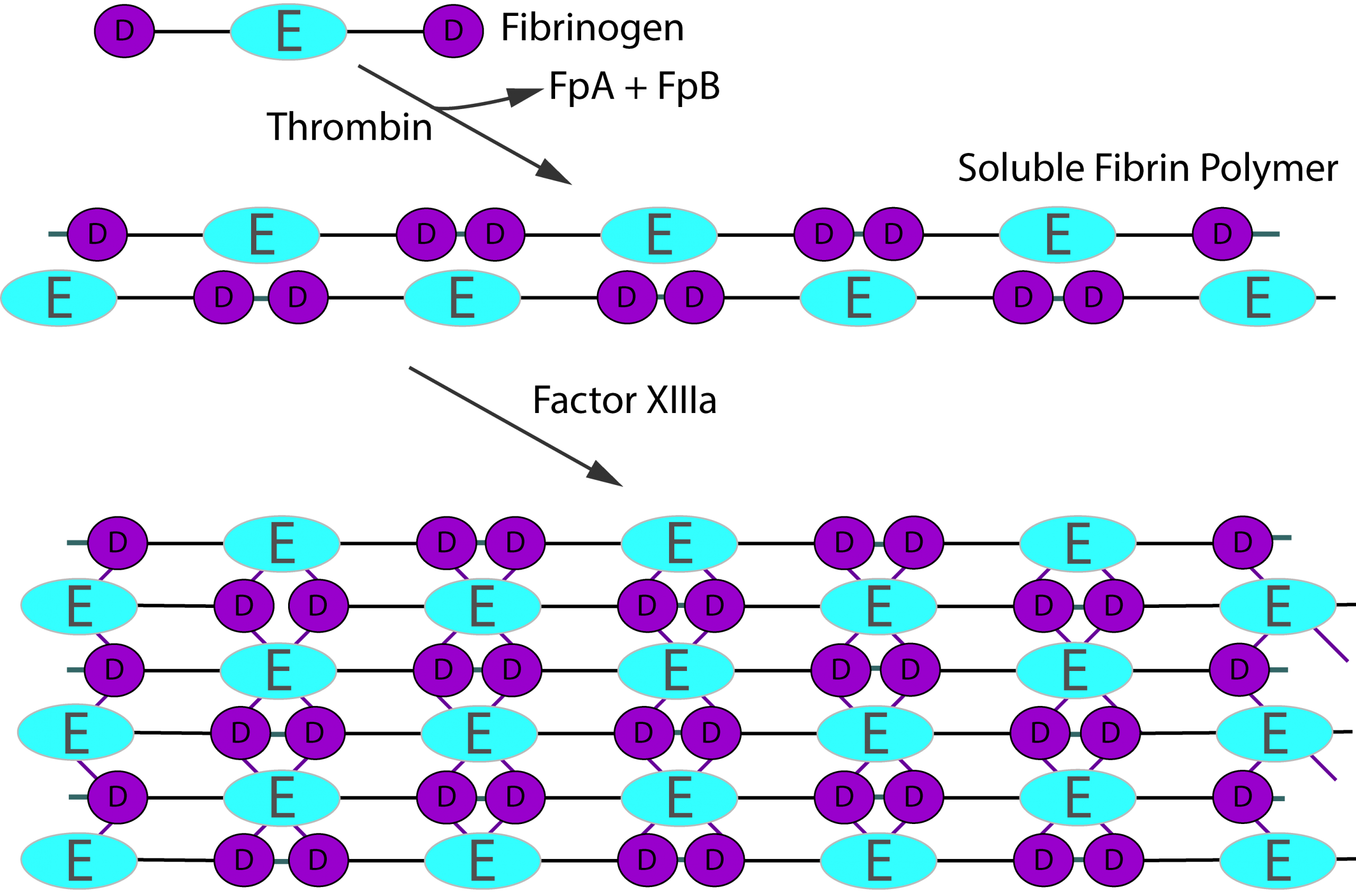 FXIIIa belongs to the family of human transglutaminases (TG).This group of enzymes is defined by their common ability to catalyze thiol- and Ca2+-dependent transamidation reactions. The TG-catalyzed reaction between specific Gln and Lys residues within substrate proteins results in the formation of covalent cross-links, defined as ϵ-(γ-glutamyl)lysine isopeptide bonds. The major physiological function of FXIIIa is to stabilize the fibrin clot during coagulation. FXIIIa cross-links α- and γ-chains of fibrin monomers within fibrin fibers once they have been formed. The intermolecular cross-linking of the fibrin monomers converts loose fibrin fibers into a stable fiber network that is able to withstand mechanical stress and resist clot rupture . FXIIIa deficiency, which causes severe bleeding diathesis, demonstrates the essential role of FXIIIa in coagulation.